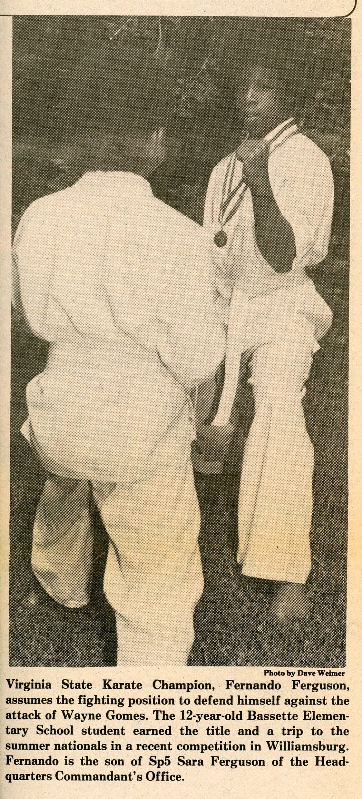 son of SP5 Sara Ferguson; Virginia State Karate Champion
